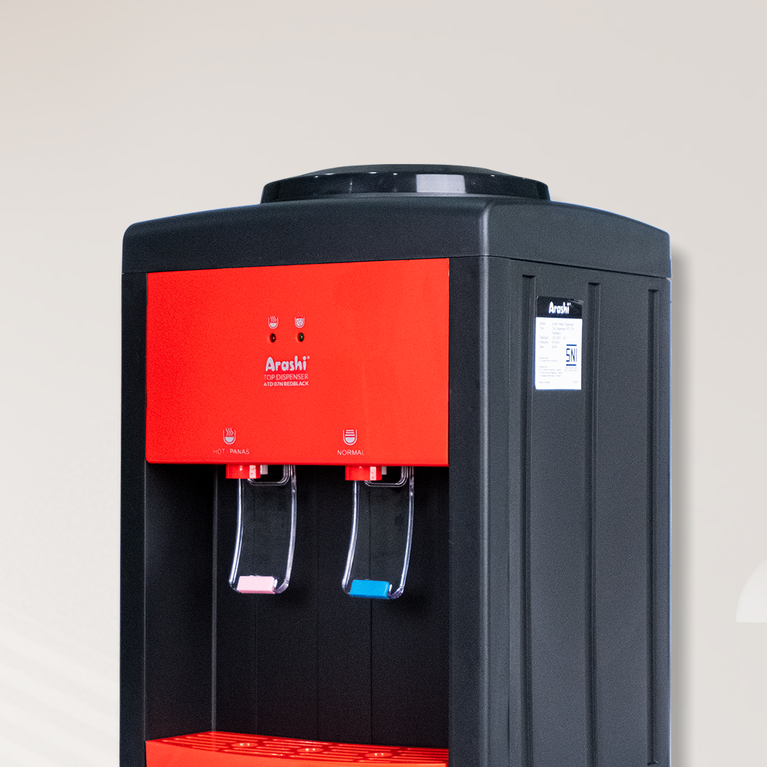Arashi Top Dispenser ATD 07N merupakan dispenser dengan muatan galon atas dengan 2 pengaturan suhu: normal dan panas. Menggunakan perpaduan warna hitam dan merah, dispenser ini siap membuat tampilan ruangan Anda menjadi lebih cantik dan ramai.
